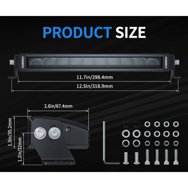 AURORA (ICE-MELTING) 50w 3200Lm Tālās Gaismas Papildlukturis Ar Baltu Gabarītgaismu 305mm E-sertifikāts (1Lux=460m)