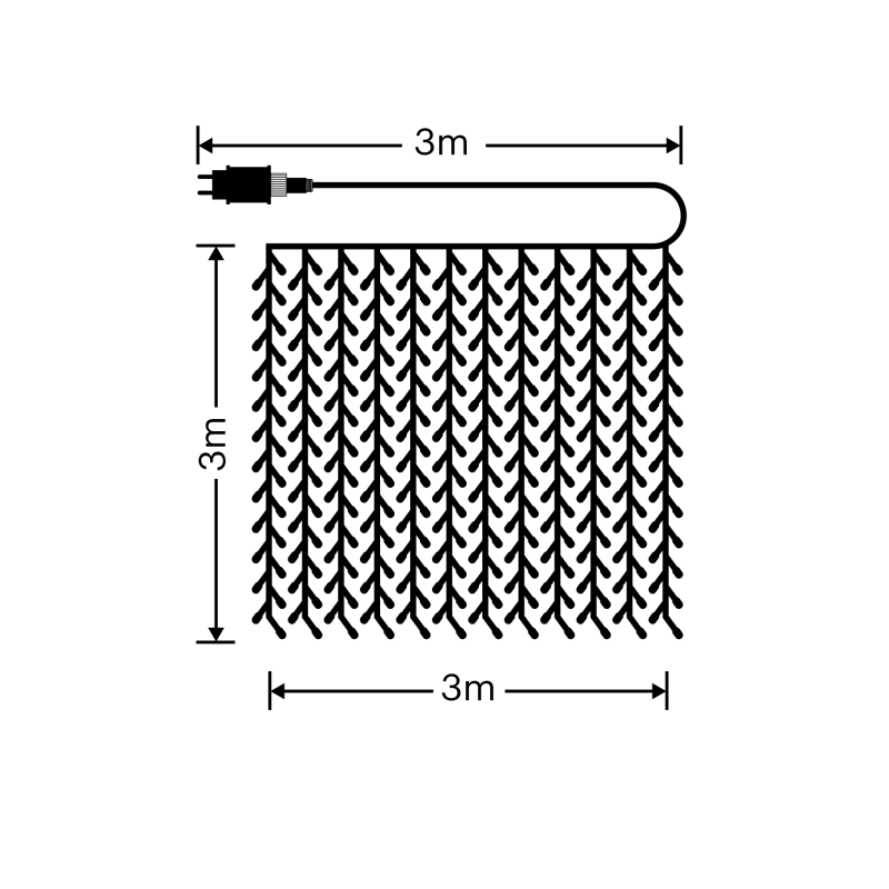 3x3 Meters Curtains Lighting LED String MODEE (300LED) Warm White