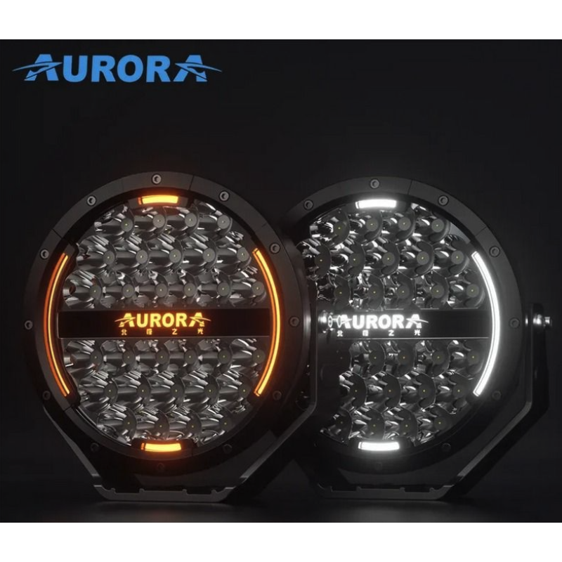 AURORA Round High Beam Auxiliary Lamp With Orange White Marker Light 150w 12000Lm (228mm) European Certificate (1Lux=900m) (2 pcs- Pair)