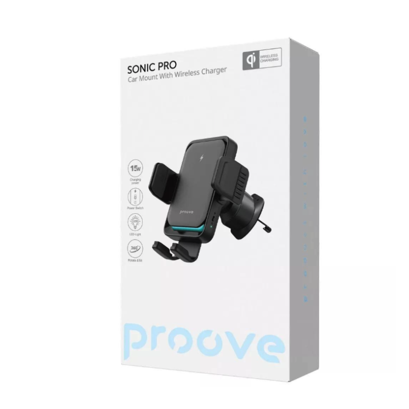 Proove Sonic Pro QI Mobilo Telefonu Turētājs Gaisa Ventilācijas Lūkā Ar 15w Uzlādi
