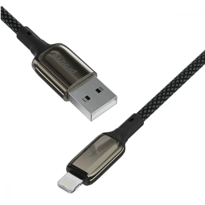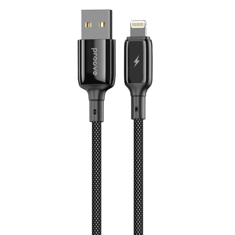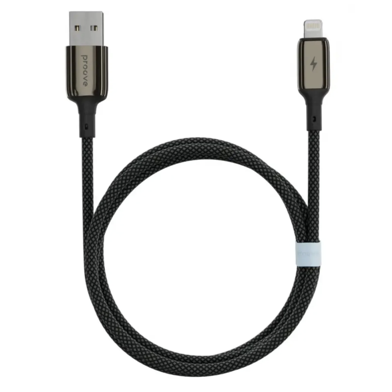 USB To Lightning PROOVE Dense Metal Uzlādes (2.4A) Kabelis Pītais 1M Melns