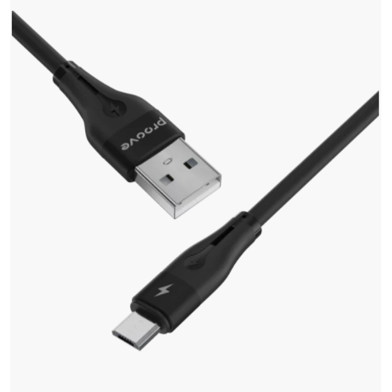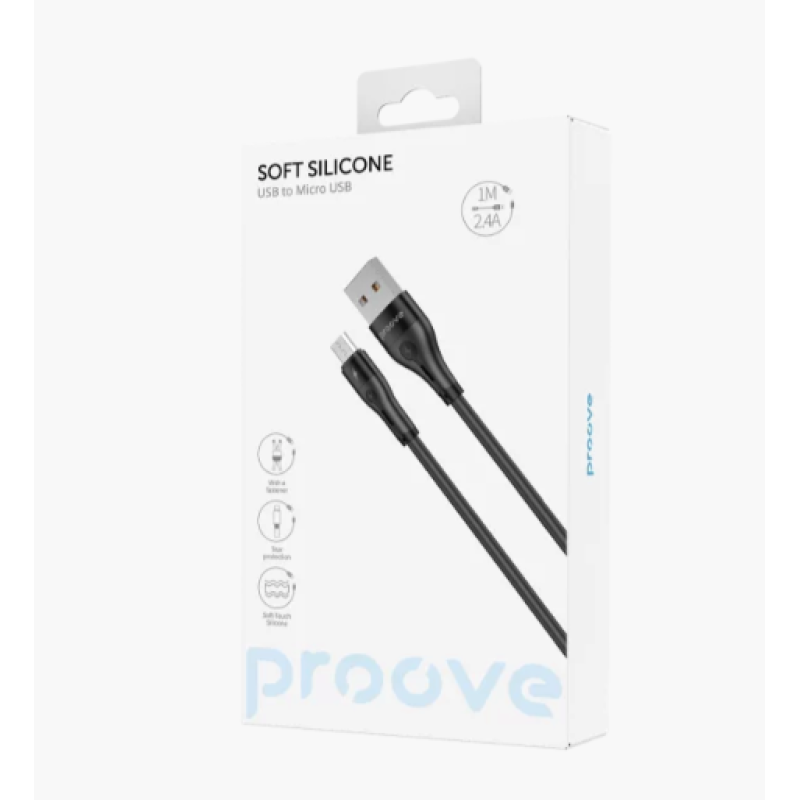 USB To Micro USB PROOVE Soft Silicone Uzlādes (2.4A) 27w Kabelis Silikona 1M Melns